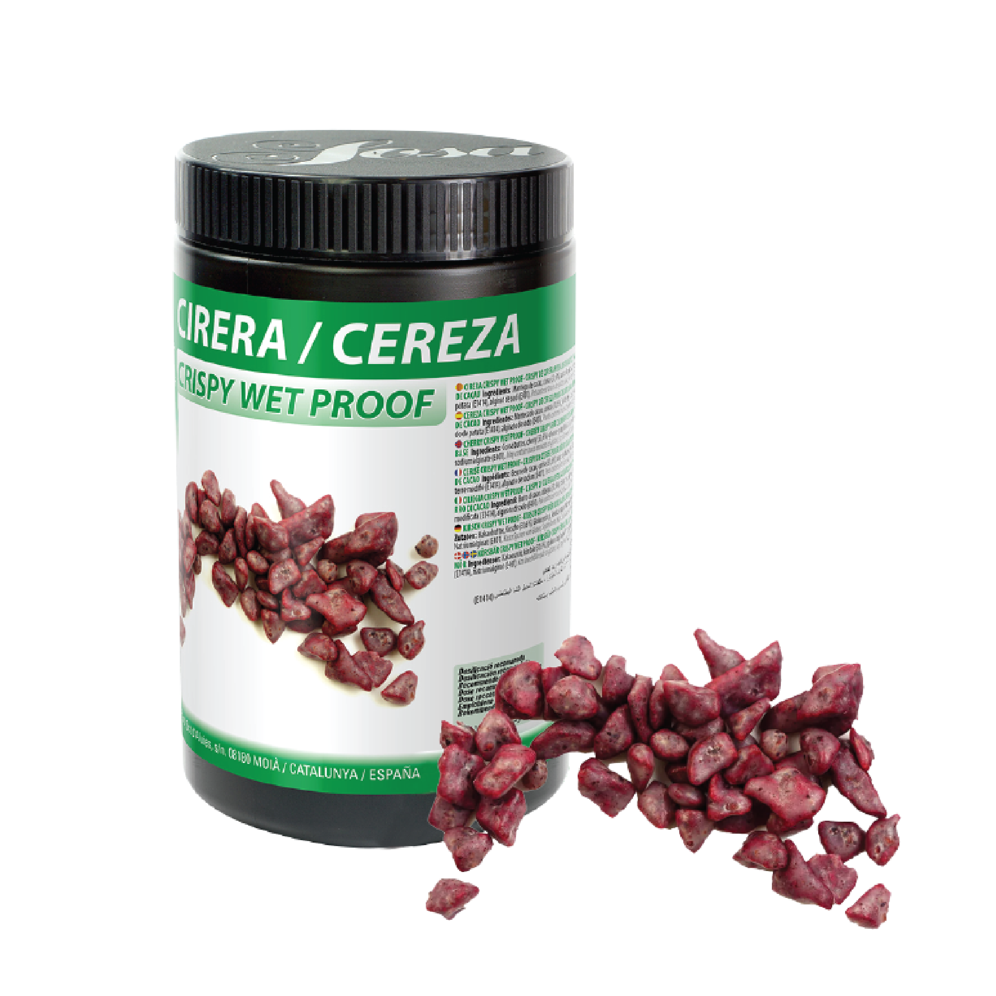Freeze-dried cherry crispy covered with a film of cocoa butter that makes it resistant to humidity, allowing it to be used in yogurts, ice creams or sauces without softening.